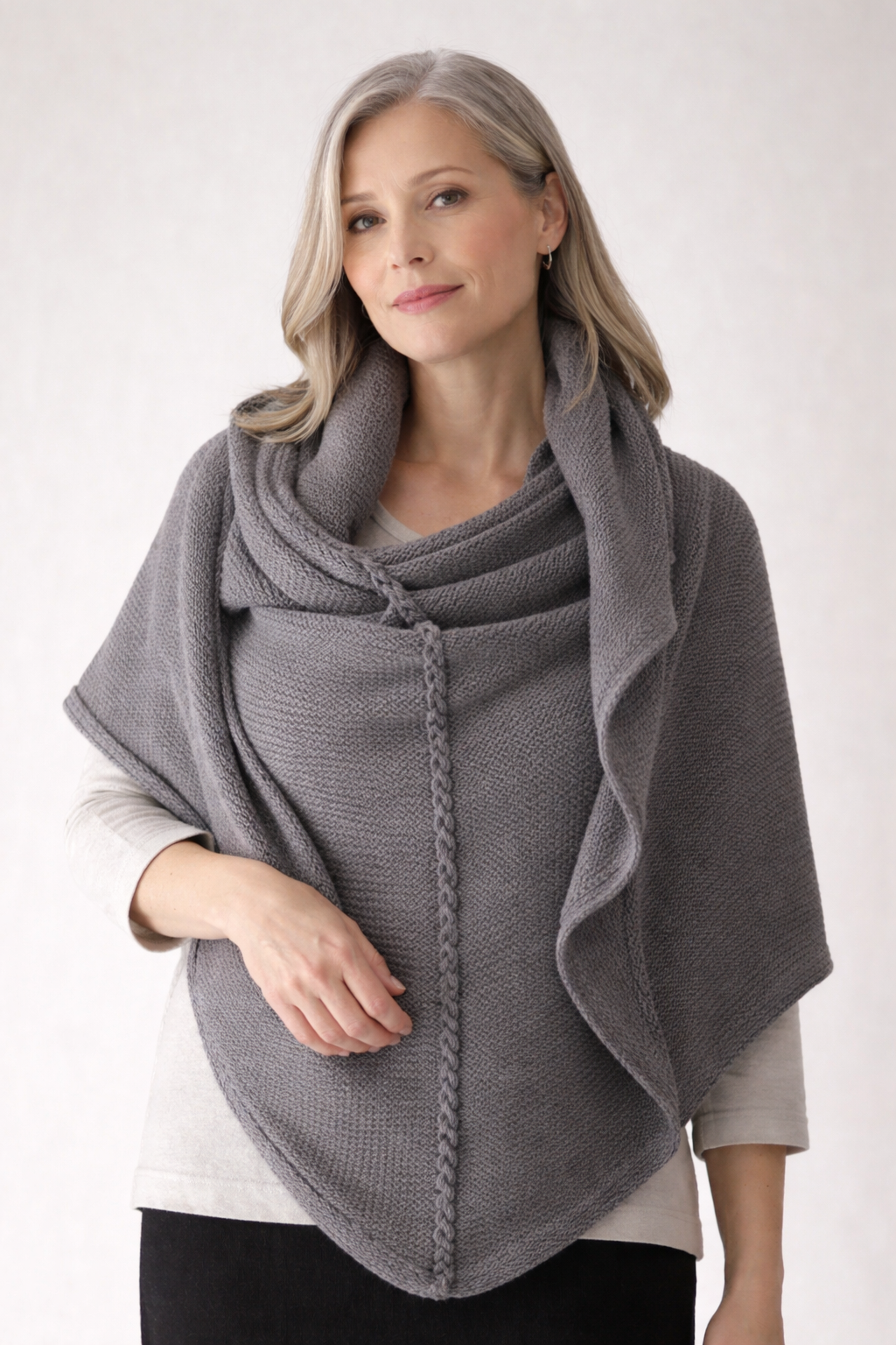 Dzianina jest ciepła, wykonana z mieszanki wełny merino i akrylu.
