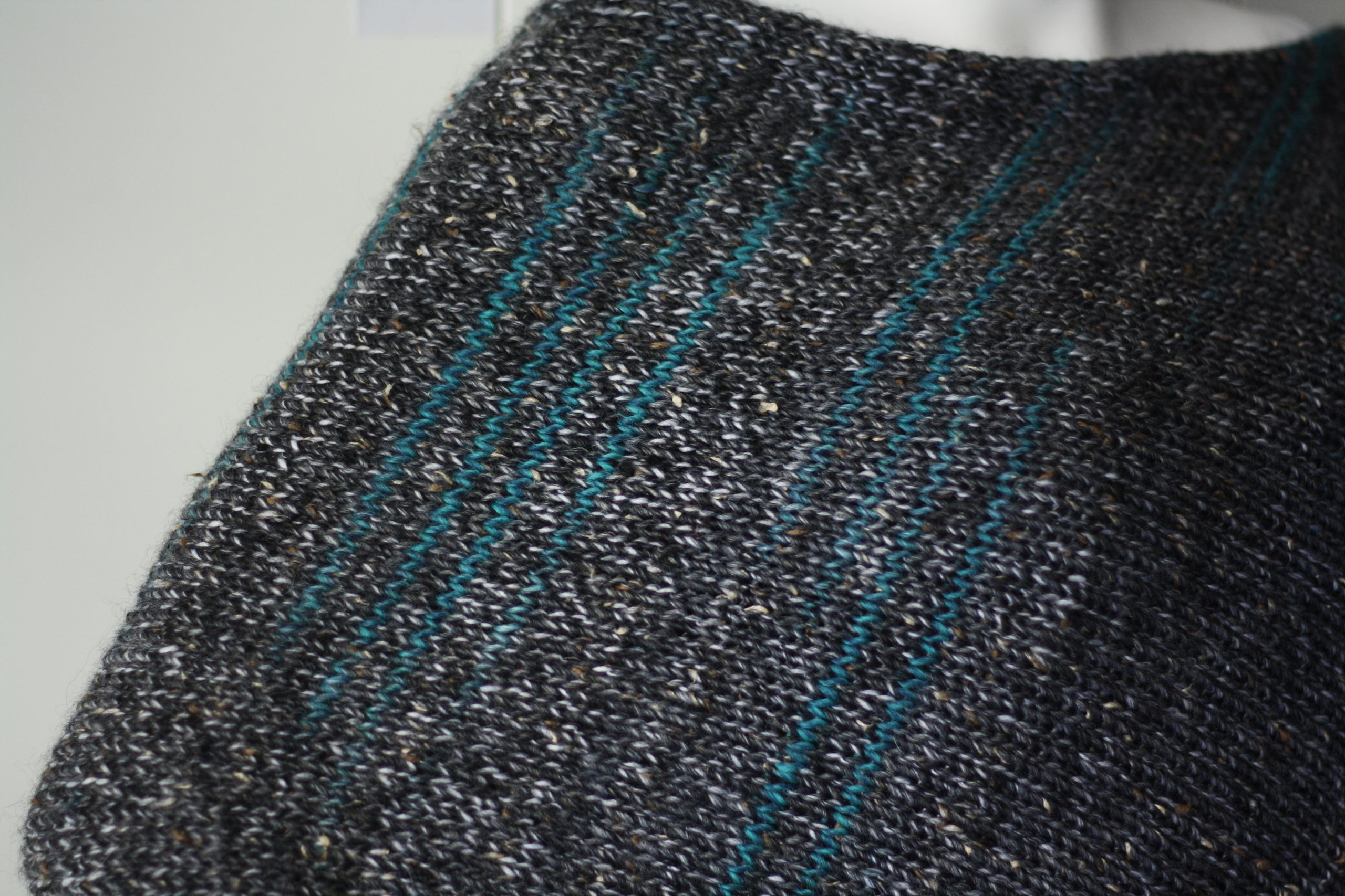Powstało z połączenia włóczki fantazyjnej z nopkami oraz jednolitej nitki.