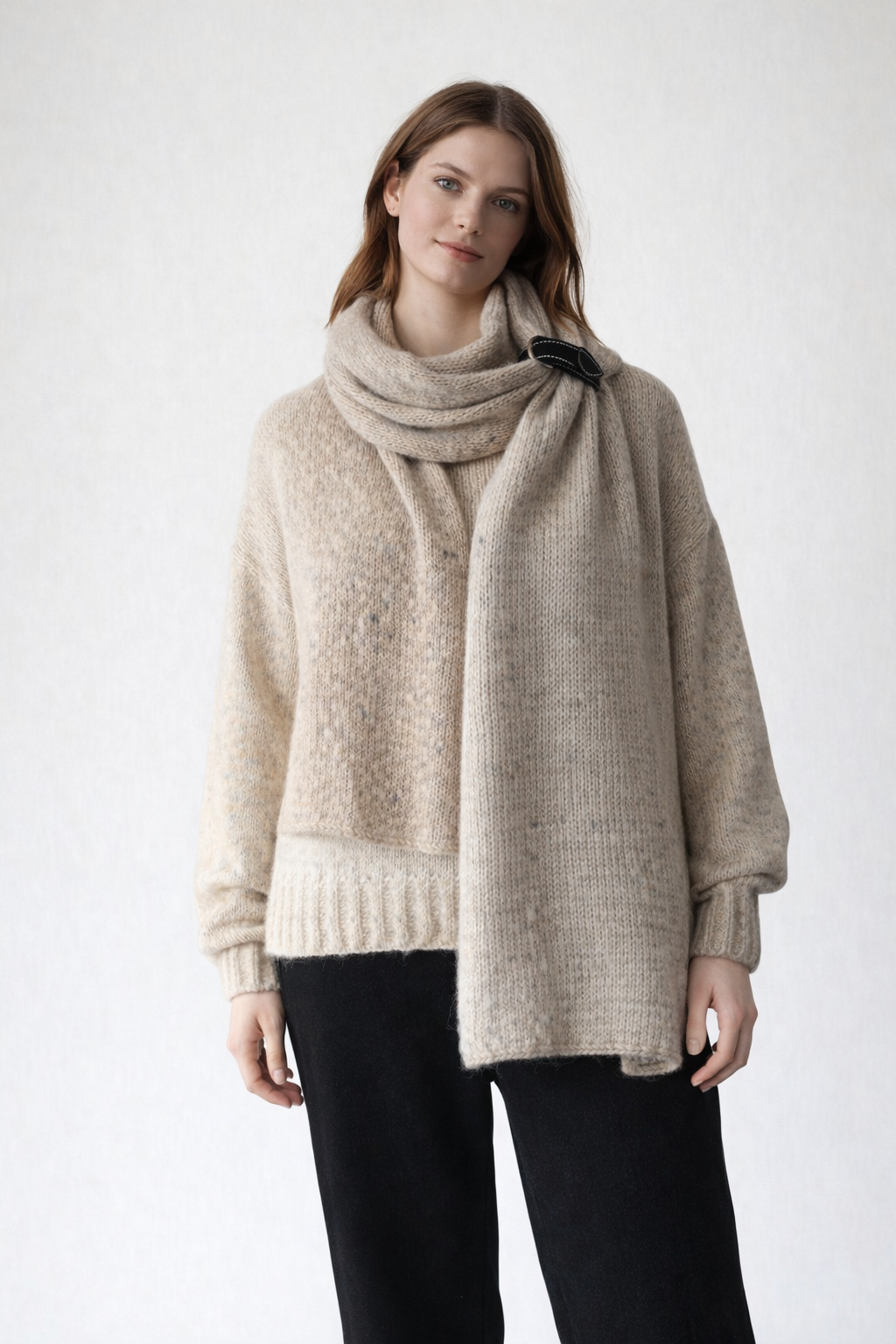 Beżowy pulower z szalikiem wykonany z wełny, jedwabiu i alpaki- gotowy do wysyłki- beige sweater