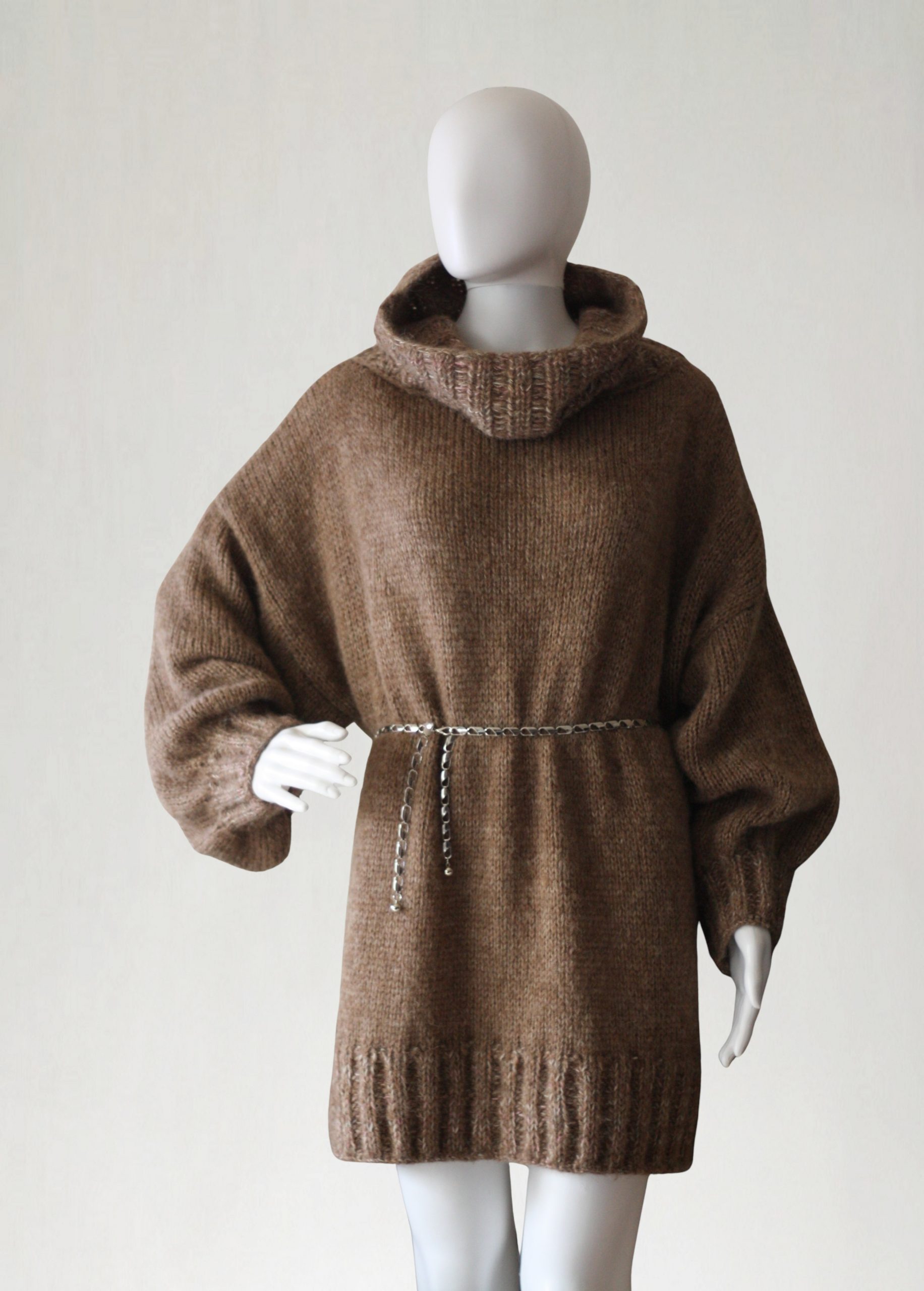 Ten wyjątkowy sweter, to połączenie rękodzielniczej precyzji i ponadczasowego stylu oversize.