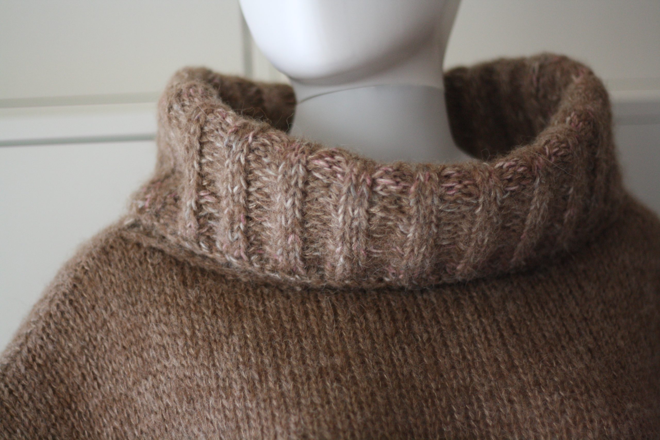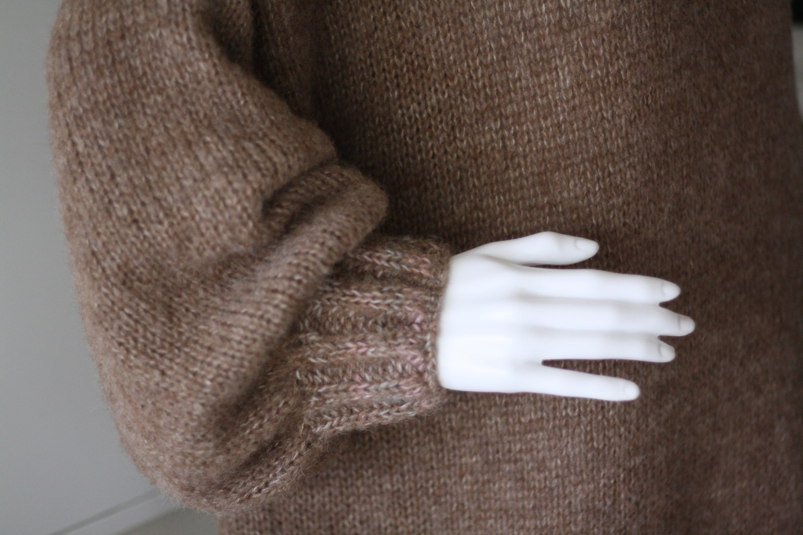 Sweter został wydziergany na manualnej maszynie dziewiarskiej, natomiast ściągacze, wykonano ręcznie na drutach– to właśnie te akcenty sprawiają, że każdy egzemplarz jest tak wyjątkowy.