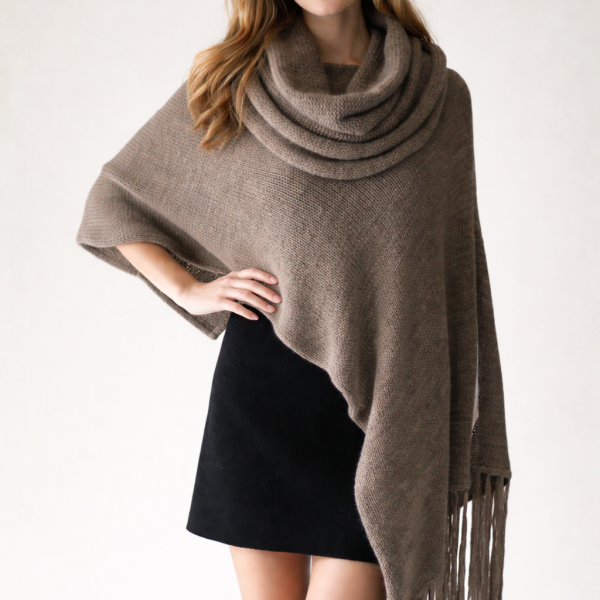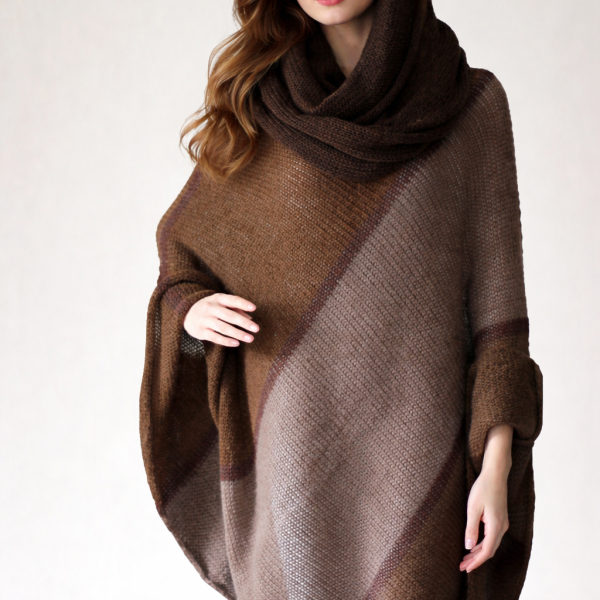 Brązowe poncho z otulaczem, wykonane z mohairu, gotowe do wysyłki- brown poncho