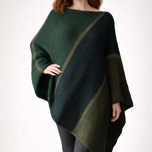 Zielone poncho, wykonane z moheru i wełny, gotowe do wysyłki- green poncho