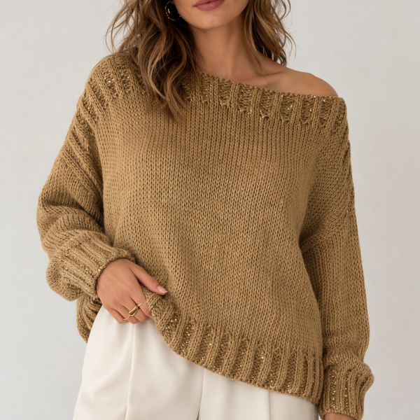 Złoty pulower wykonany z bawełny i lnu, z błyszczącymi cekinami, gotowy do wysyłki- cotton pullover