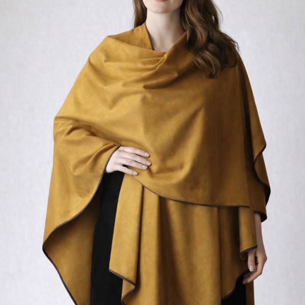 Musztardowe poncho z zamszu- womens poncho