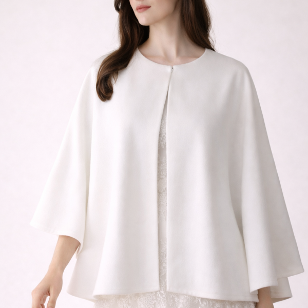 Zapinana biała ślubna pelerynka z tkaniny boucle- wedding cape