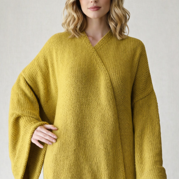Musztardowy sweter, kardigan, żakiet, wykonany z mieszanki wełny i akrylu- womens cardigan